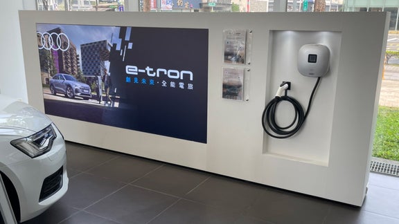 Audi 高雄更打造 Audi e-tron 展間專屬「創見未來」資訊牆,提供有關「純電生活圈」的最新資訊,完整家用、公用及極速充電佈局可輕鬆一目瞭然。展示中心同時也提供 e-tron 交車及保養維修服務,及建置最高功率達 180 kW 的 Audi 極速充電站,給您最便捷且快速的充電服務,為您的純電生活帶來更即時的支援。