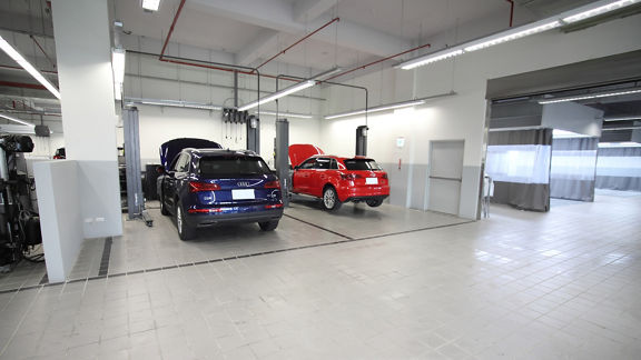 Audi 新莊旗艦中心服務廠 於 2019 年第 3 季正式加入 Audi Taiwan 營運陣容,依照原廠規範打造與德國同步的頂級尊榮服務,內部設有 10 個工作位,是目前新北市最大的 Audi 服務據點。服務廠內配置耗費巨資成立,且經過原廠認證的鈑噴設備,能就近提供新北、桃園等地區的車輛最完美的烤漆工藝。