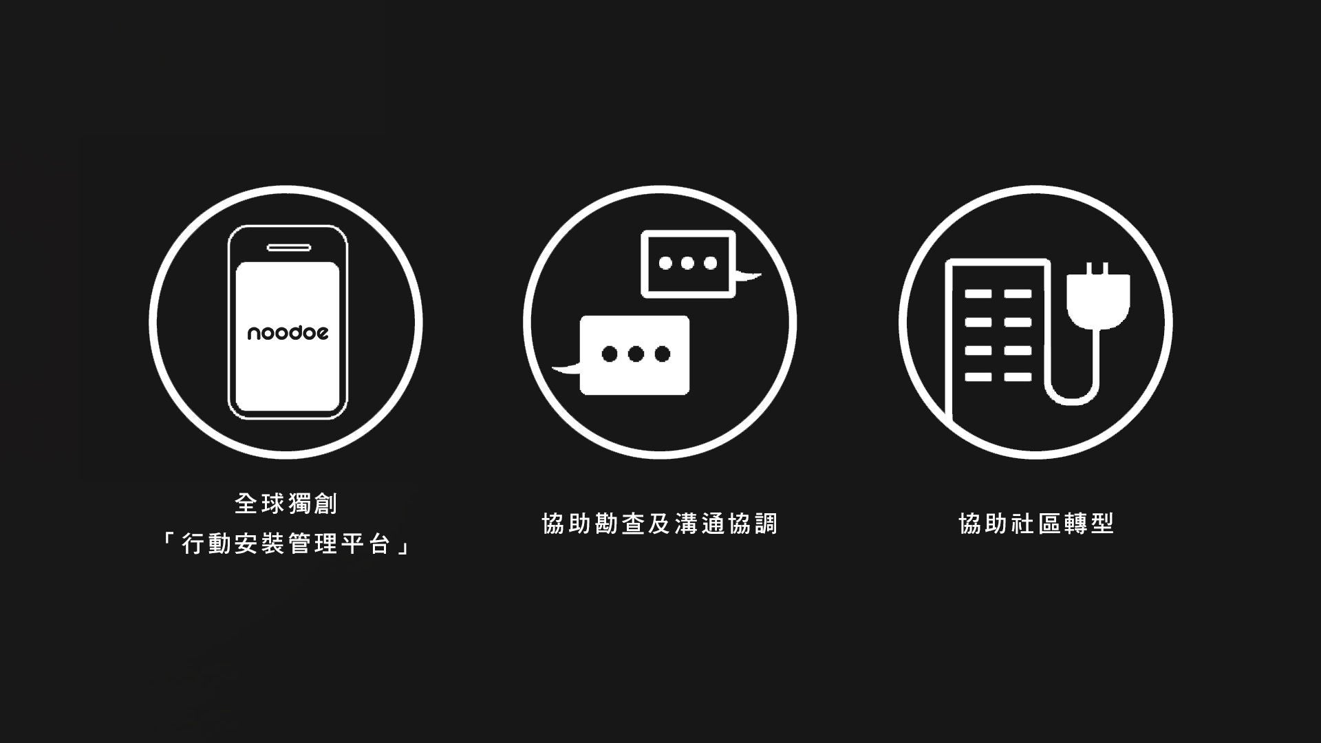- Noodoe 將依您的需求到府勘查,判斷住家條件是否適合安裝家用充電樁。正式安裝前,如有任何與社區協調的需求,Noodoe 也會協助您代為溝通。