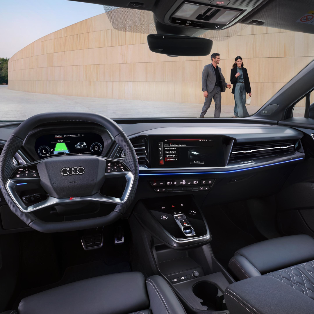 從車頭到車尾一體成型,車身輪廓至頂部弧線渾然天成,優雅且具美感。Audi Q4 e-tron 讓純電生活充滿魅力,盡顯風格。