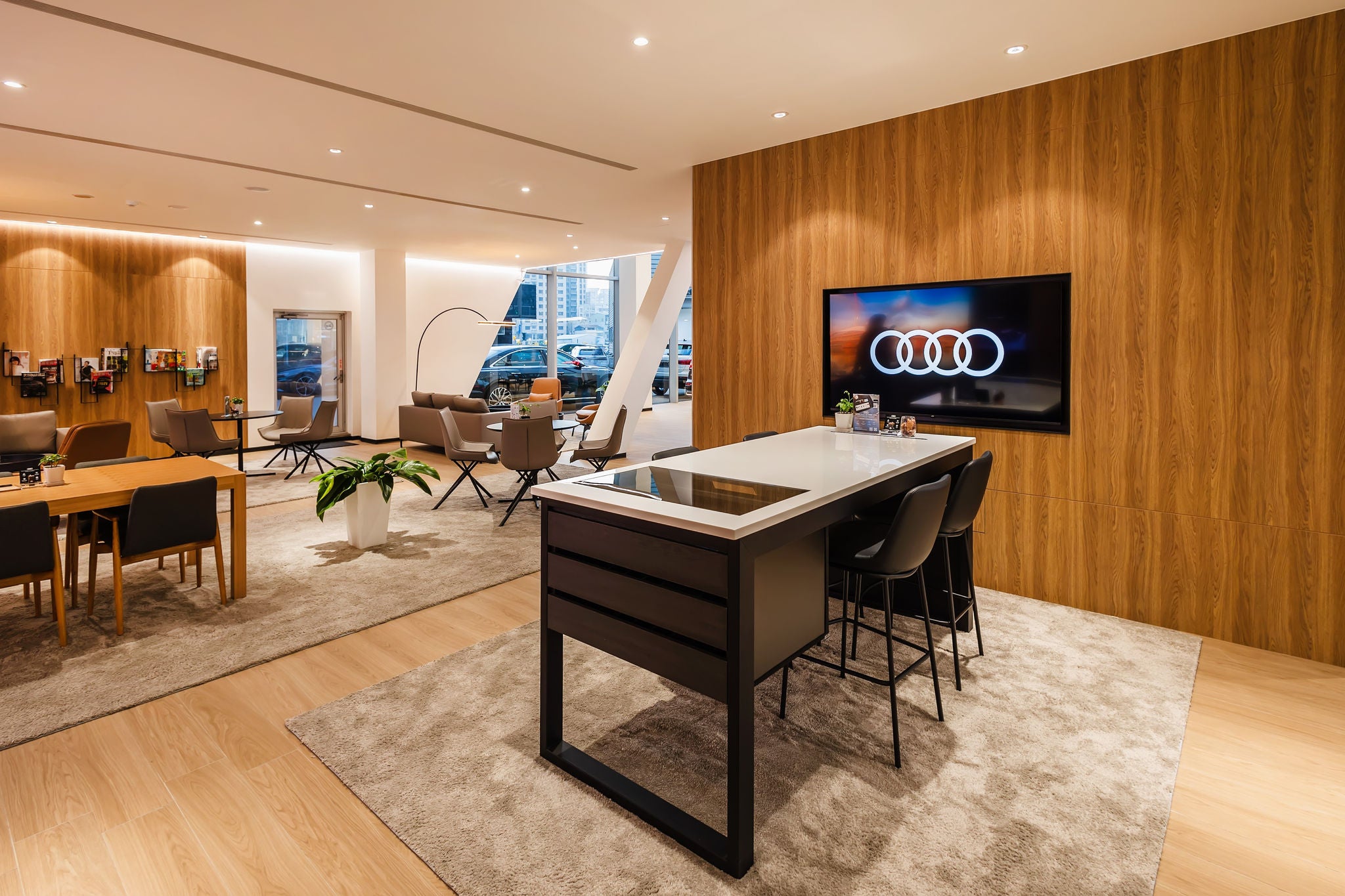 Audi Progressive Retail 的設計哲學著重於打造舒適、令人放鬆的空間,希望每一位踏入 Audi 展示中心的 Audi Family 車主及消費者皆能體會「 如家一般 」的感受。