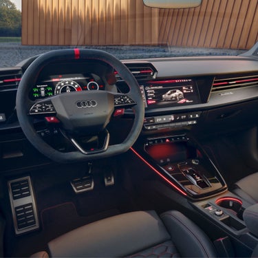 Audi RS 3 Sedan 配備 RS 專屬 Fine Nappa 真皮雙前座跑車座椅,以及 12.3 吋 Audi 全數位虛擬座艙 plus,將對跑車性能的追求完美體現在內裝中。細節層疊 聽覺饗宴